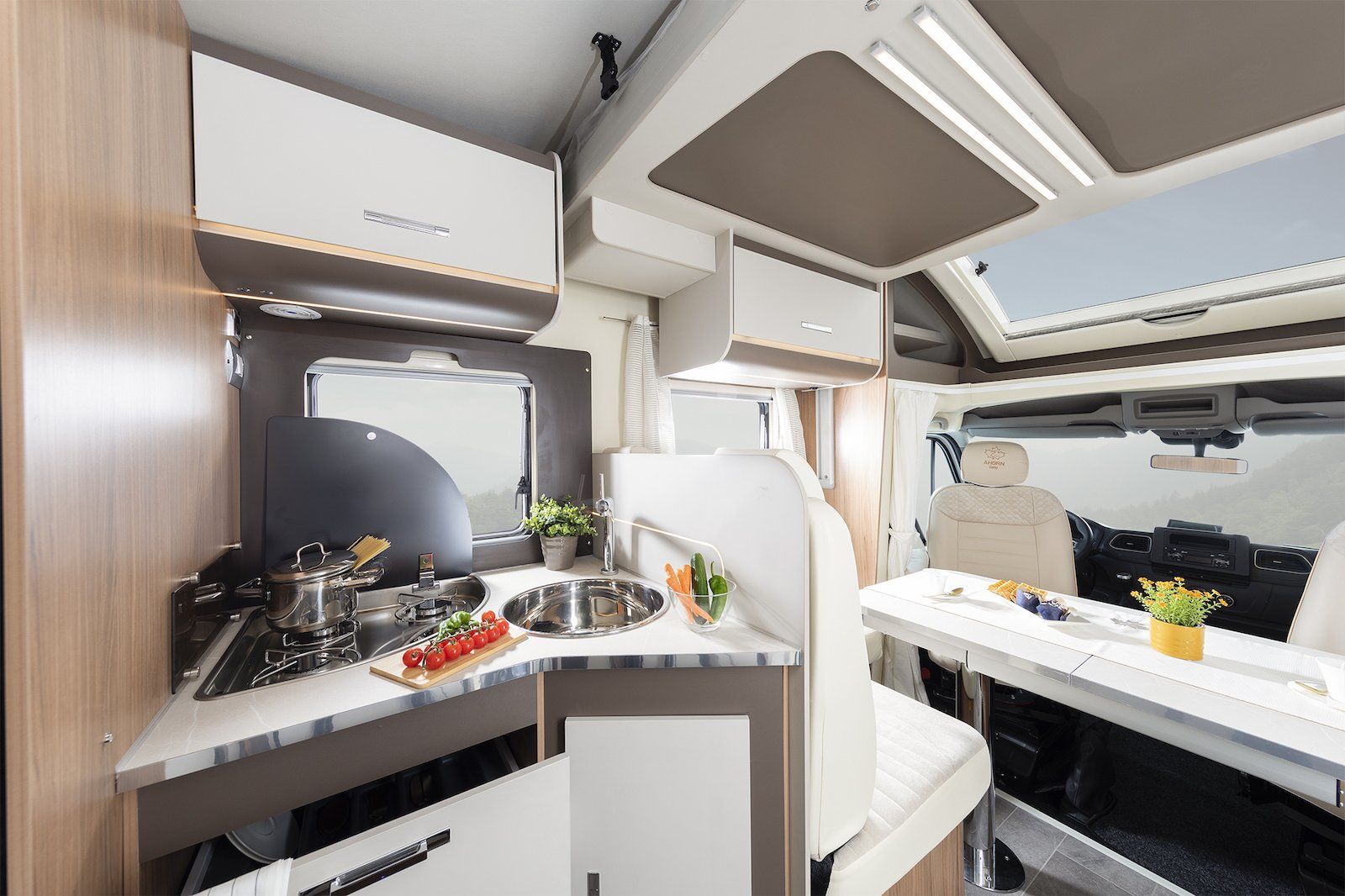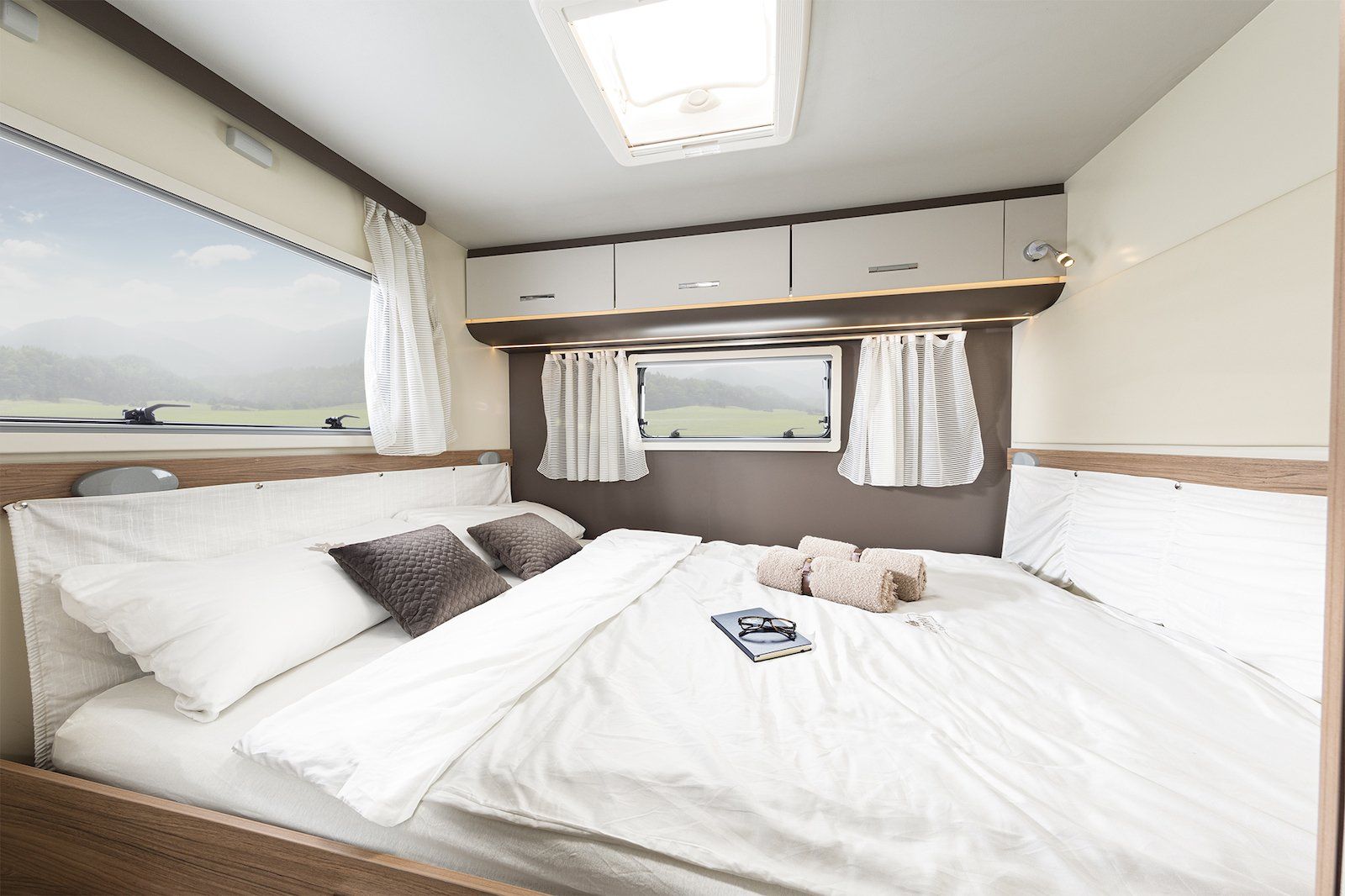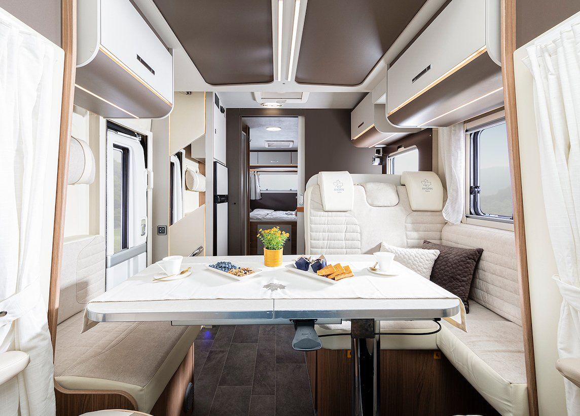 Der Alaska TD mit großem, 1,50 m breitem Doppelbett, wurde mit modernsten Designelementen ausgestattet und besticht durch seinen eleganten Innenraum, unter anderem auch durch eine Vielzahl an LED Elementen. Optional kann ein Panorama Front Dach (Sky Roof) dazu bestellt werden. Besonders ist der Alaska durch die Kooperation mit der Firma Webasto mit optionaler Bestellung des Webasto Winterpaketes auch für Winterurlaube geeignet.
