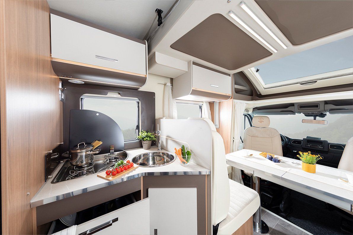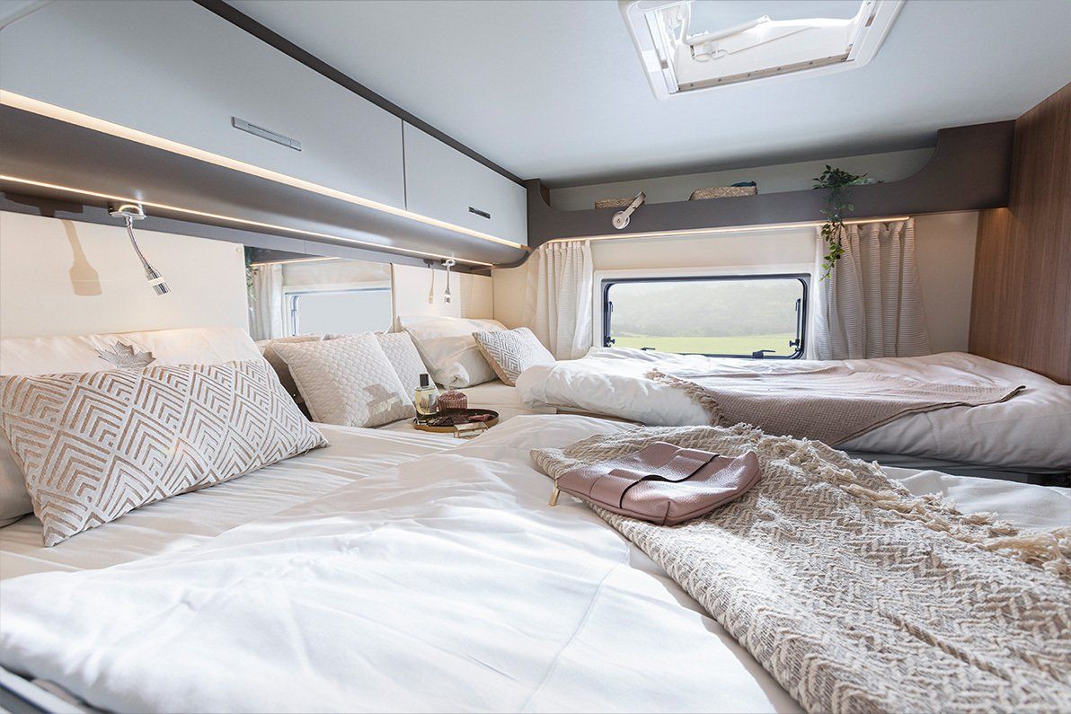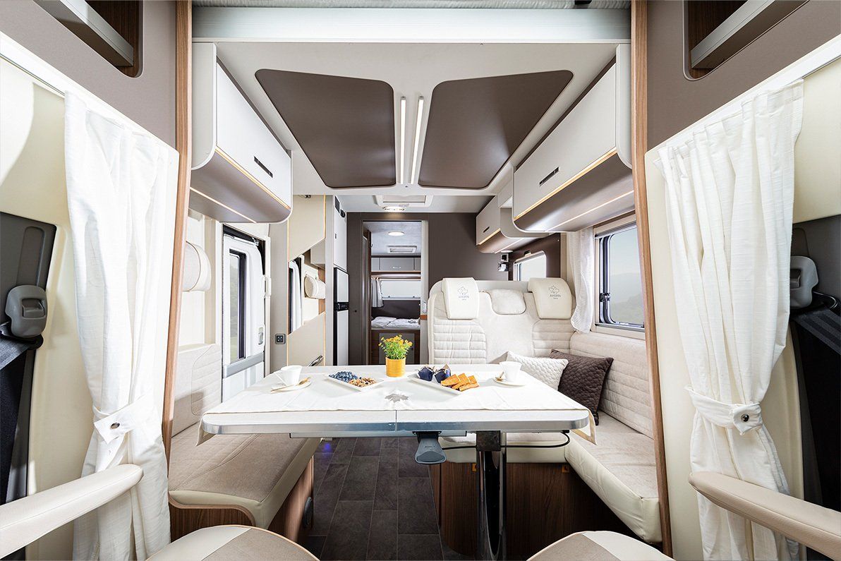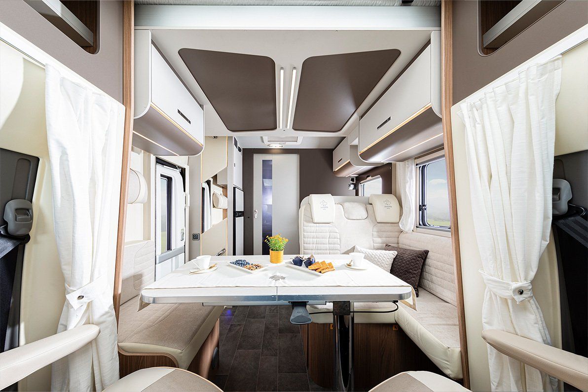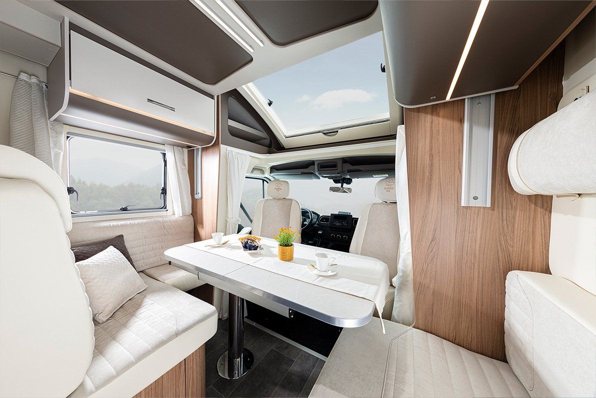 Der Alaska TE mit Einzelbetten wurde mit modernsten Designelementen ausgestattet und besticht durch seinen eleganten Innenraum, unter anderem auch durch eine Vielzahl an LED Elementen. Optional kann ein Panorama Front Dach (Sky Roof) dazu bestellt werden. Besonders ist der Alaska durch die Kooperation mit der Firma Webasto mit optionaler Bestellung des Webasto Winterpaketes auch für Winterurlaube geeignet.