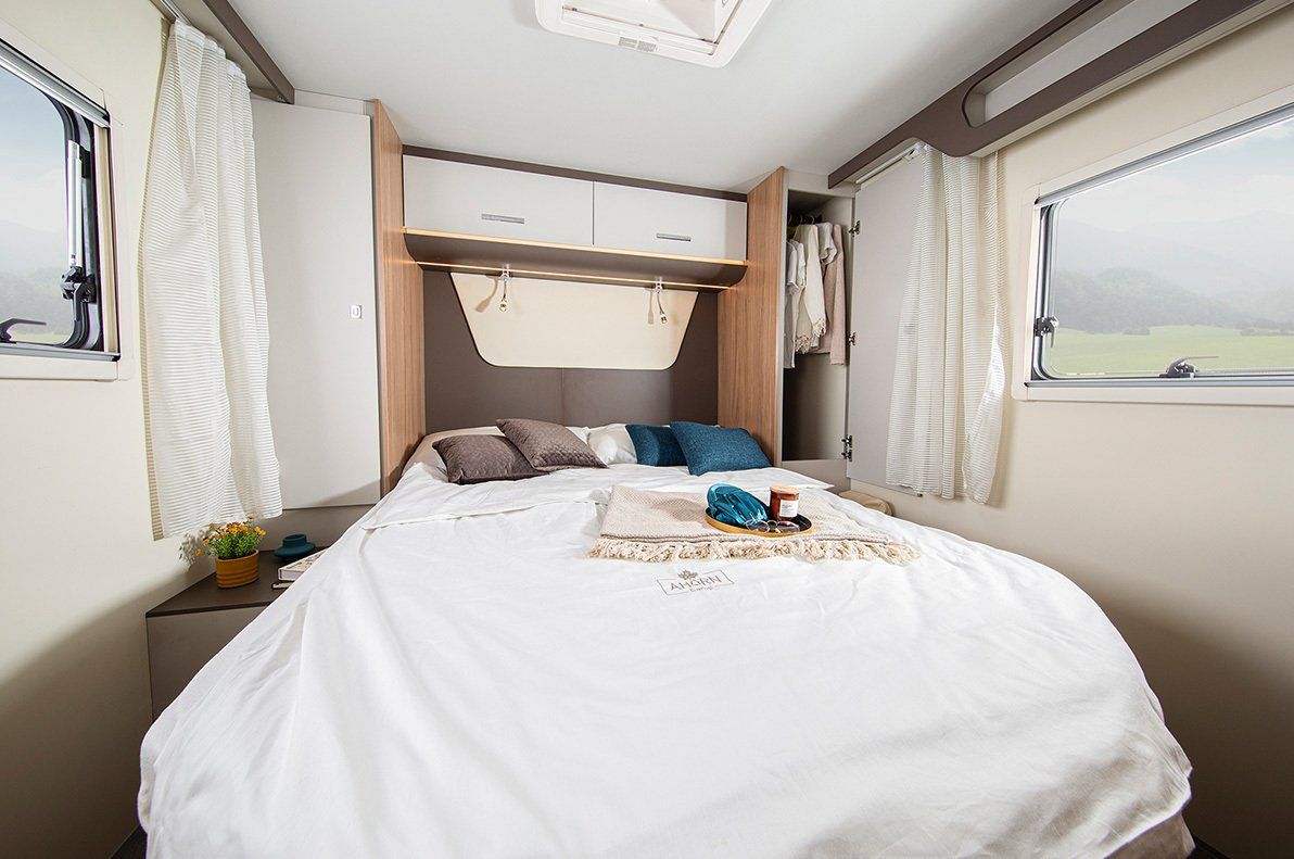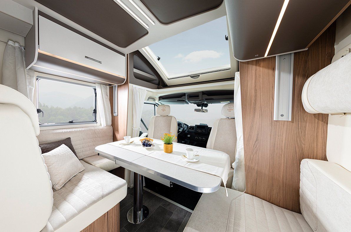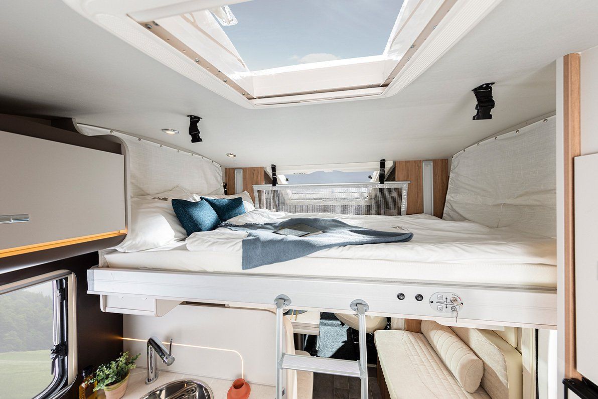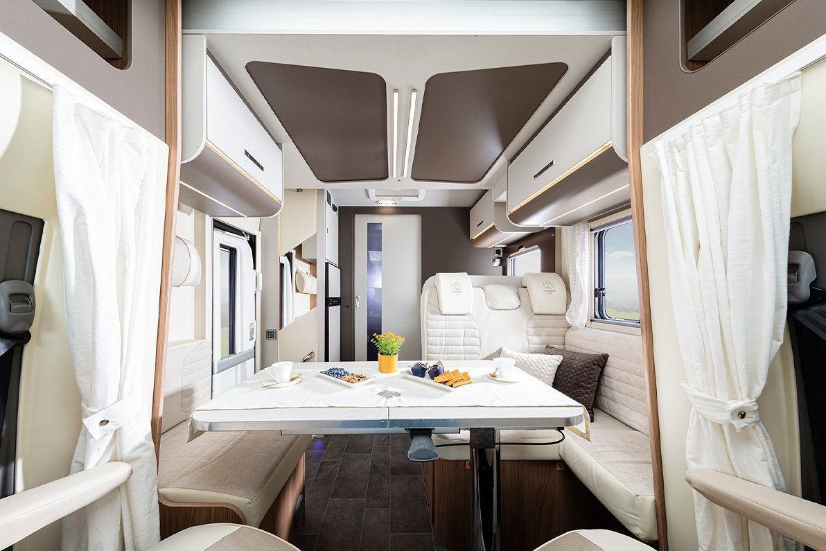 Der Alaska TQ mit Queensbett wurde mit modernsten Designelementen ausgestattet und besticht durch seinen eleganten Innenraum, unter anderem auch durch eine Vielzahl an LED Elementen. Optional kann ein Panorama Front Dach (Sky Roof) dazu bestellt werden. Besonders ist der Alaska durch die Kooperation mit der Firma Webasto mit optionaler Bestellung des Webasto Winterpaketes auch für Winterurlaube geeignet.
