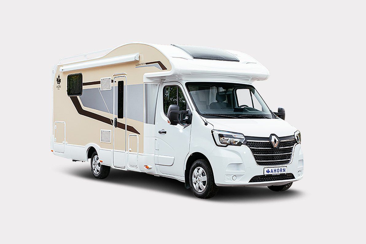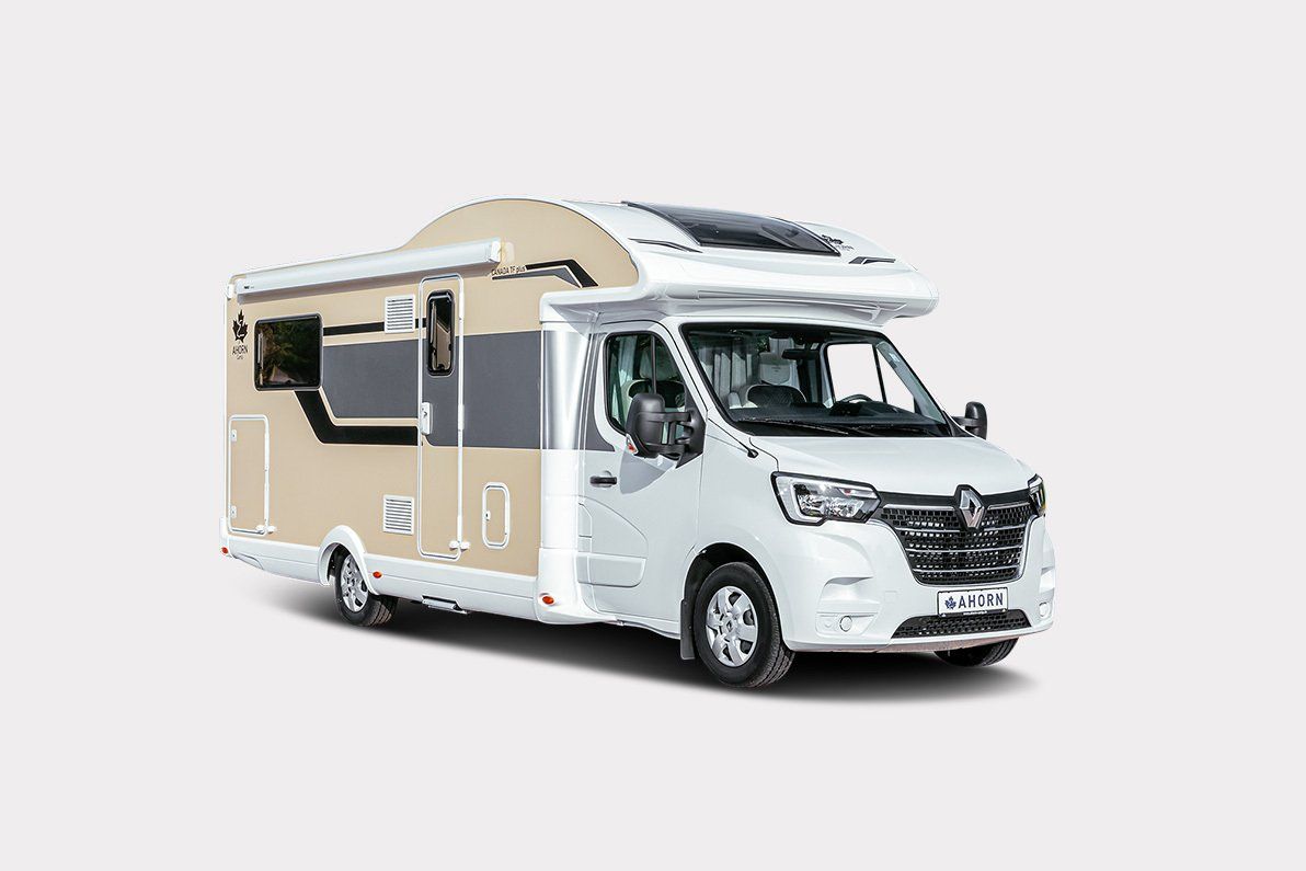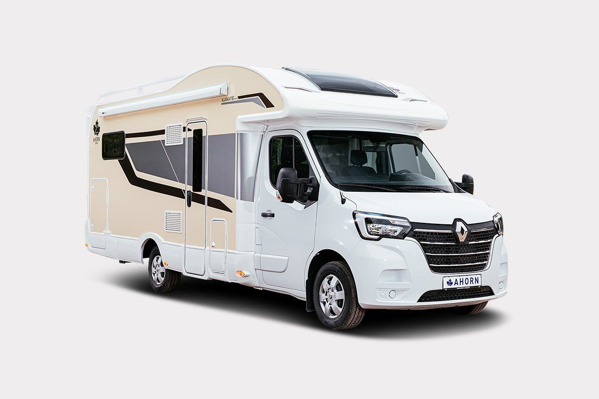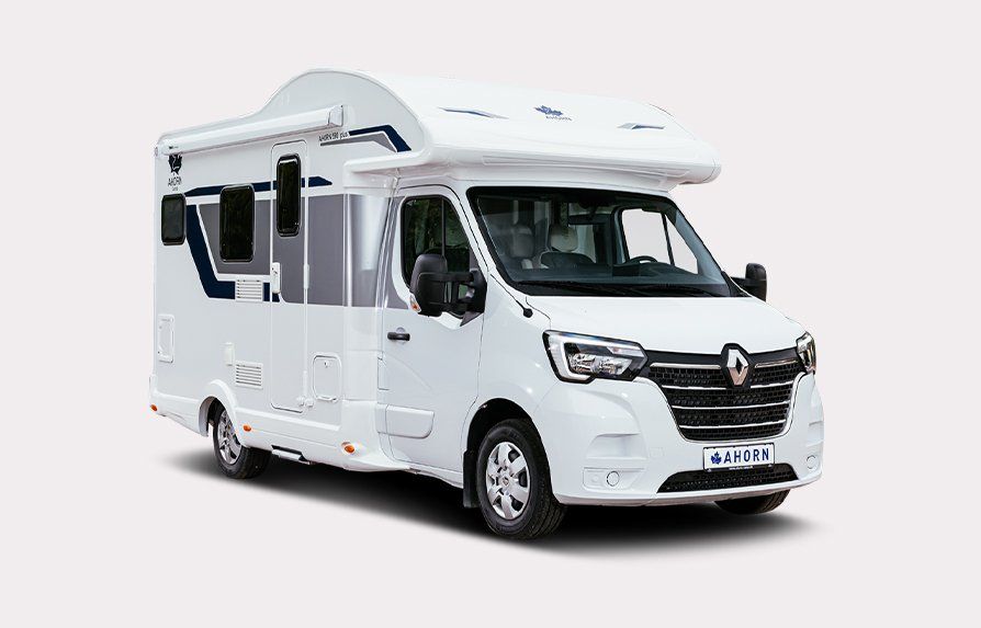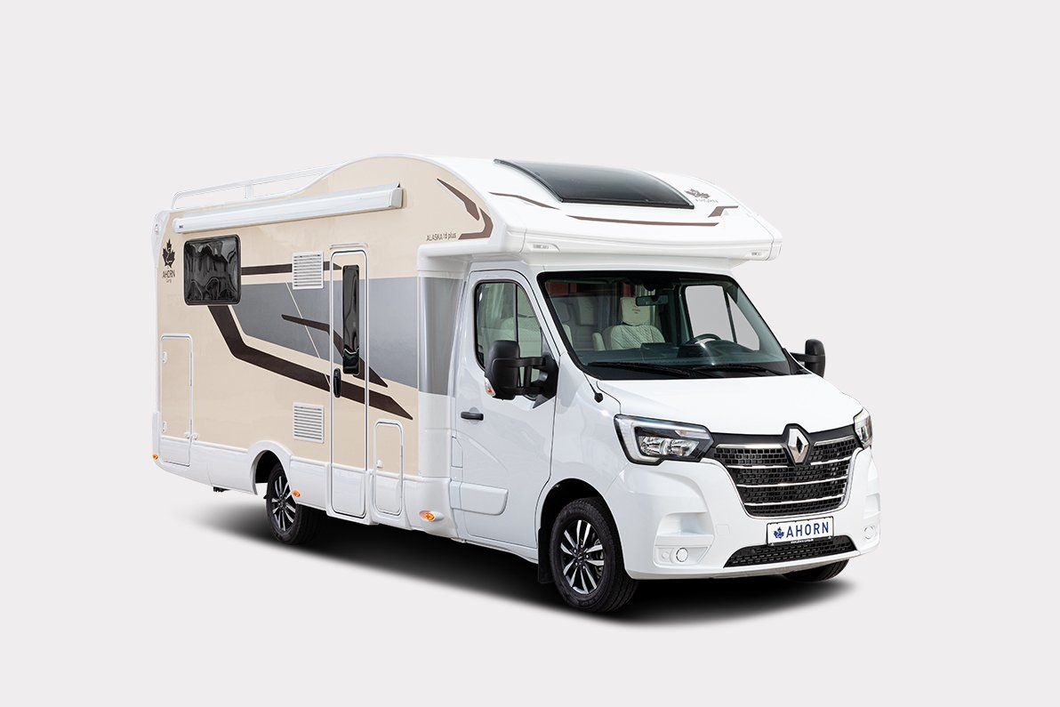 - Alaska: Ein teilintegriertes Wohnmobil mit Hubbett ist ein komfortables Reisemobil mit einem elektrischen Bett über der Sitzgruppe. Er hat eine große Heckgarage und ist auf einem Renault Master Chassis gebaut.
